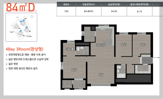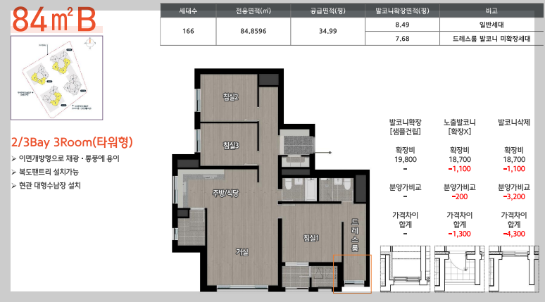 84㎡B - 2/3Bay 3Room(타워형),옵션