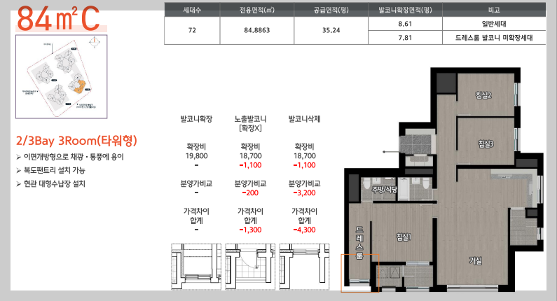 84㎡ C - 2/3Bay 3Room(타워형),옵션