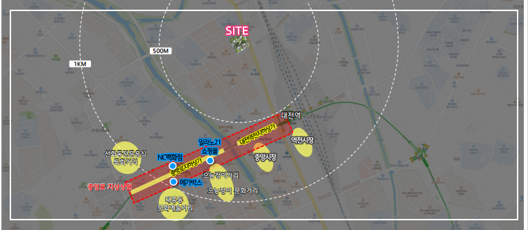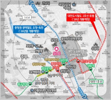 대전역인근 중심상업지구가 가깝게 있고 홈플러스,코스트코,카톡릭대학교, 대전성모병원, 충남대학교병원등 인접