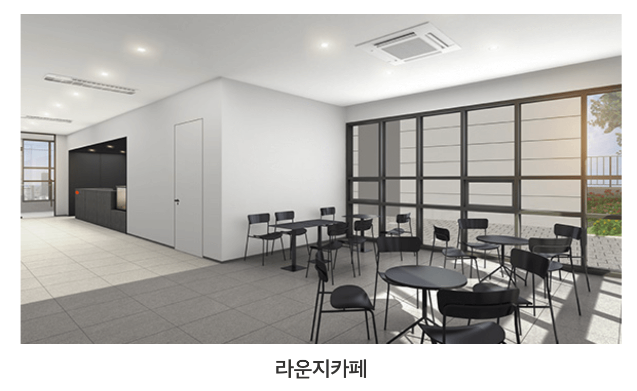 - 3층 커뮤니티 센터에 마련된 스크린골프장, 피트니스룸, 라운지 카페 등으로 운동과 소통의 장 마련