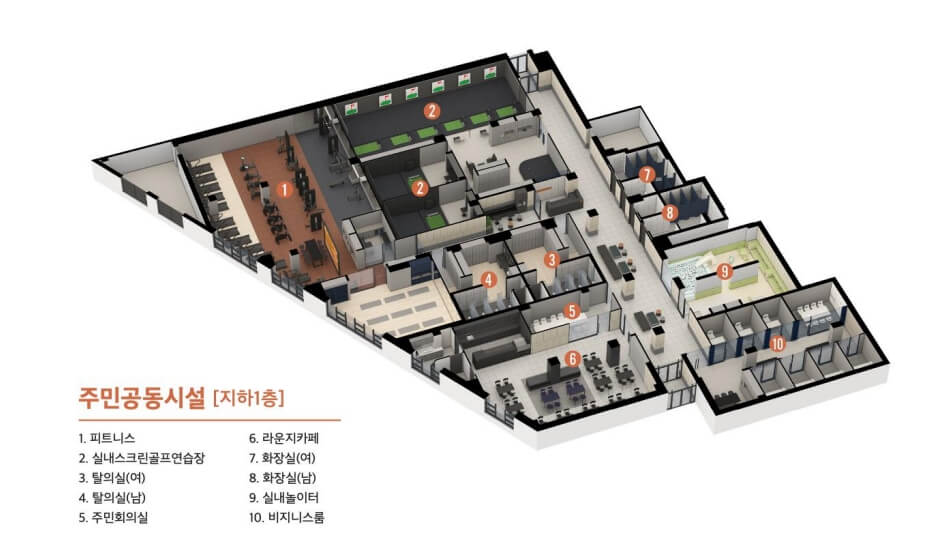 단지 내에는 단풍나무길, 이팝나무길 등 가로수길이 조성되어 계절감을 느낄 수 있습니다. 중앙광장에는 잔디마당과 수경시설이 포함된 테마정원이 조성될 예정으로, 입주민들에게 쾌적한 환경을 제공합니다. 또한, 피트니스센터, 골프연습장, 카페, 비즈니스룸 등 다양한 커뮤니티 시설이 마련되어 입주민들의 편리한 생활을 지원합니다.