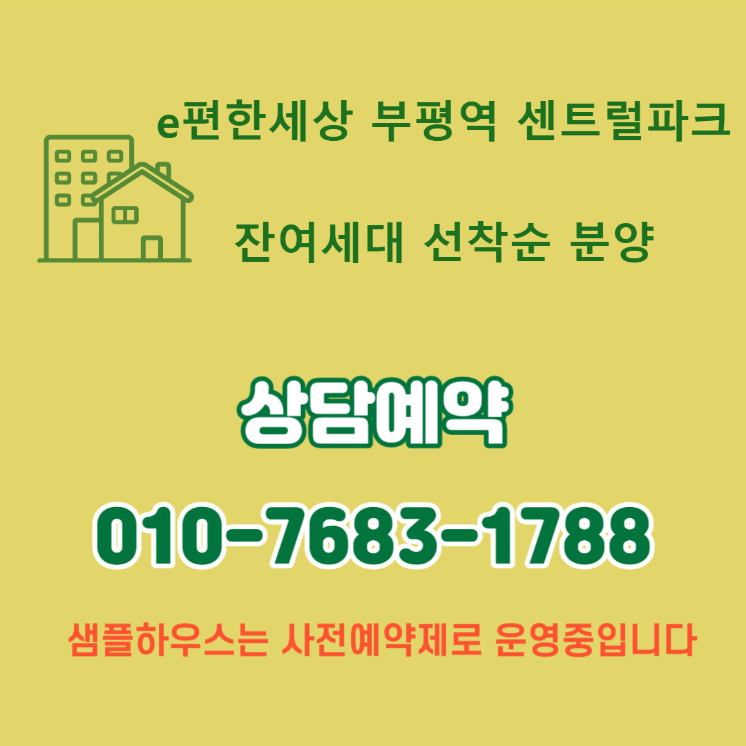 이편한세상 부평역 센트럴파크 아파트는 100% 사전예약제로 운영하고 있습니다. 상담 및 방문계획이 있으신분은 아래 번호로 연락 주시거나 관심고객등록을 해주시면 상담 및 방문예약을 해드립니다. 많은 관심과 문의 부탁드립니다.