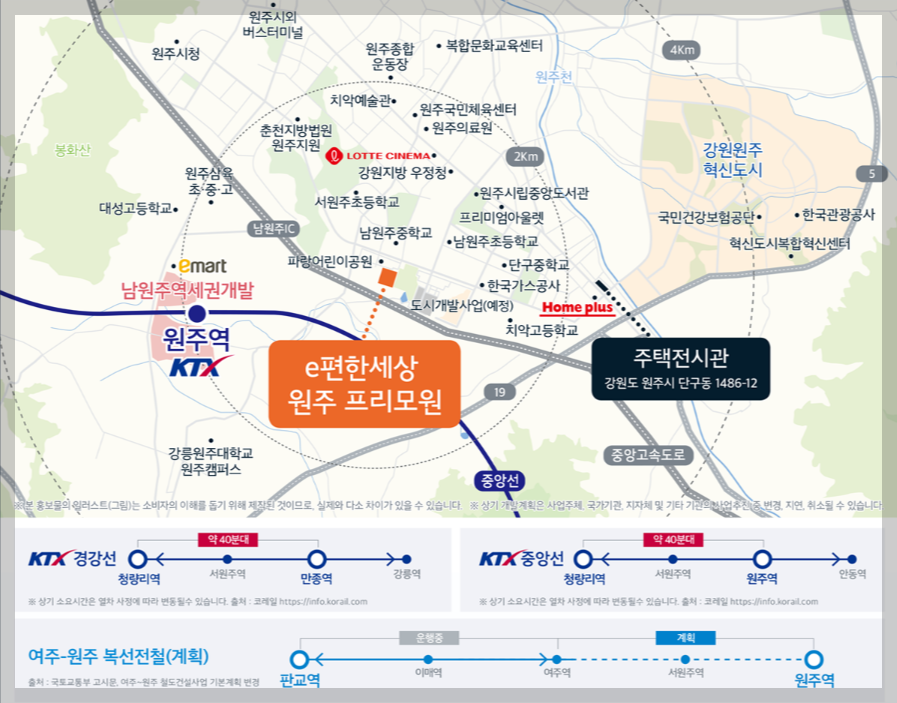 서울 접근성이 뛰어난 쾌속 교통망과 원주의 돋보이는 미래가치와 완성된 생활 인프라를 갖춘 뛰어난 입지, 교통, 교육, 생활편의, 공공시설가지 완벽한 입지를 누릴 수 있습니다.(남원주 IC, 이마트, 원주역 KTX)